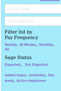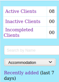 Search clients by Name, SIN, Email etc.. And sort () by category | |