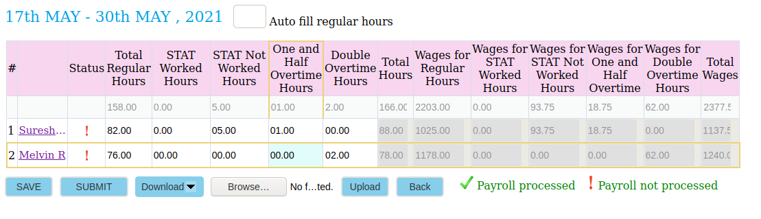 - Fill the employee pay hours on the downloaded excel sheet and save.