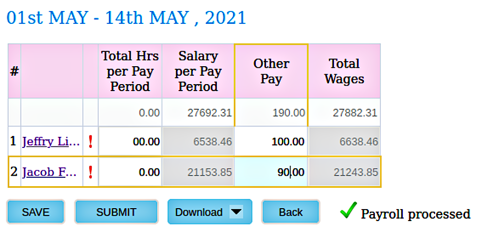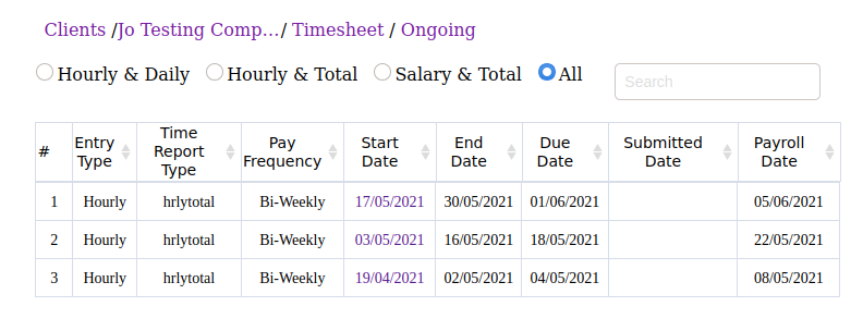 Note: In the timesheet, pay periods are auto generated based on the employee pay details