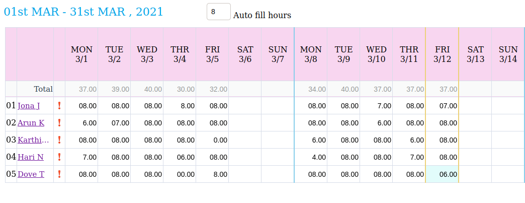 Autofill option can be used to quickly fill hours.