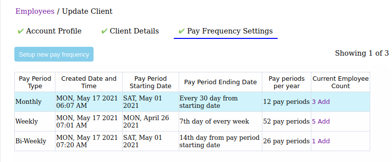 - Click on the setup new pay frequency button.